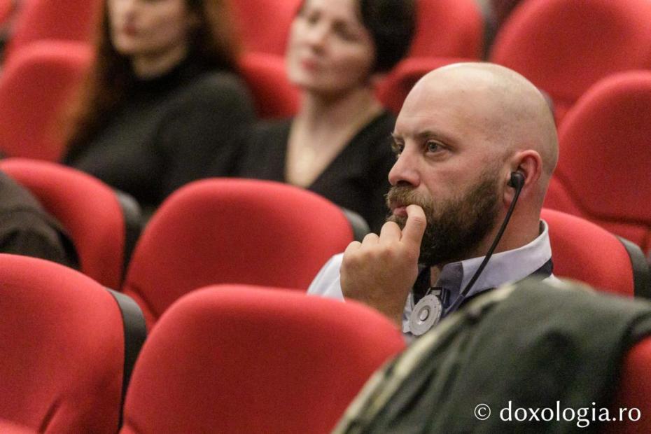 Seara s-a încheiat cu un nou film, un film prezentat publicului în premieră europeană absolută! După o zi intensă și colorată, proiecția alb-negru a filmului „Nebun pentru Hristos” a uimit și a fascinat în egală măsură! Căci alb și negru nu a însemnat doar o simplă alegere estetică, ci o spovedanie a umbrelor și a luminilor din sufletul omenesc. În alb-negru l-am cunoscut pe părintele John, un călugăr atipic dintr-o mănăstire de pe coasta Texasului. În lumina difuză a ecranului, chipul „nebunului pentru Hristos” modern a devenit o icoană vie a smereniei și a durerii purtate pentru ceilalți. Am trăit filmul. Cu adevărat, regizorul Josh David Jordan a reușit să surprindă ceva rar: frumusețea credinței ortodoxe trăite până la nebunie – o nebunie sfântă, o iubire fără măsură.